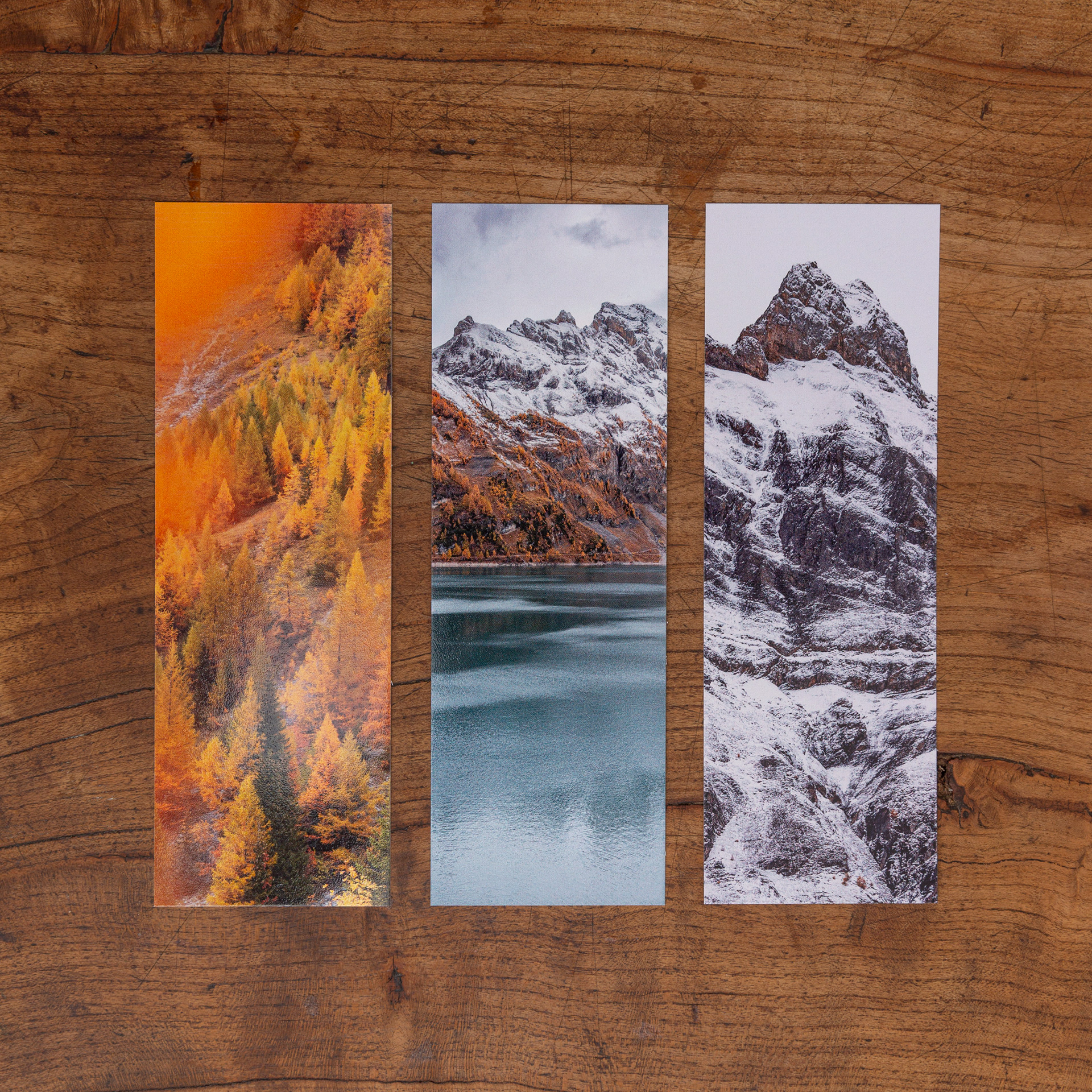 Marque-pages au prix de CHF 2.- pièce, six images disponibles.